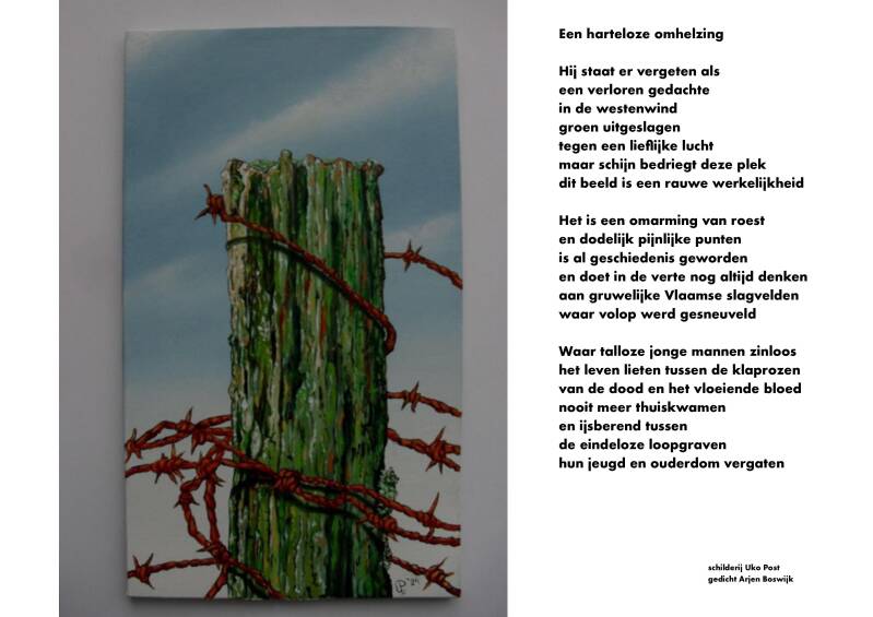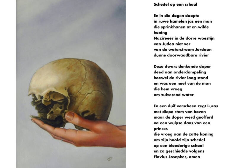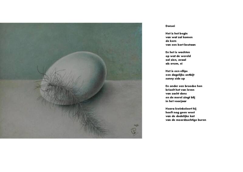 Gedicht bij olieverfschilderij op paneel titel: SCHELP. Gedicht is geschreven door leerlingen ( Thijs, Scarlett, Marc, Reinout, Liselotte van de Openbare Basisschool ´Ter Borch` te Eelderwolde. Dit onder leiding van de Groningse dichter, A.H. Arjen Boswijk.